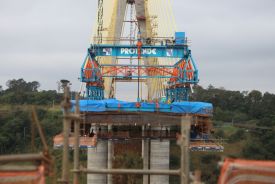 Puente de la Integración entre Paraguay y Brasil a sólo setenta metros para unirse, y a tres meses de terminarse por completo